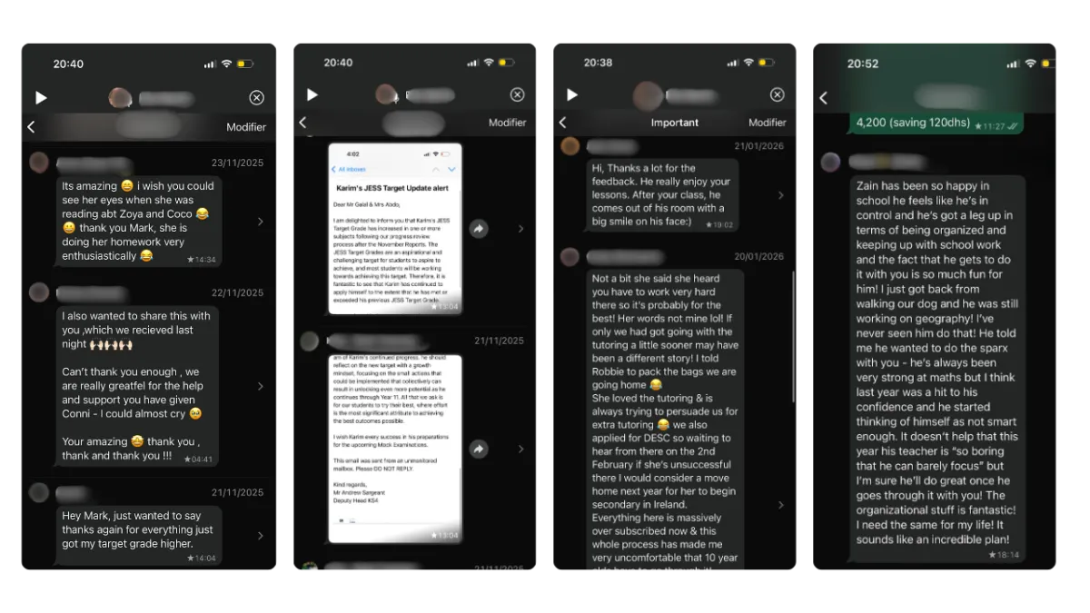 Mark helped my son completely change how he approaches all exams. His writing became much more structured and confident, and he moved from a Grade 6 to a Grade 8 in just one term.