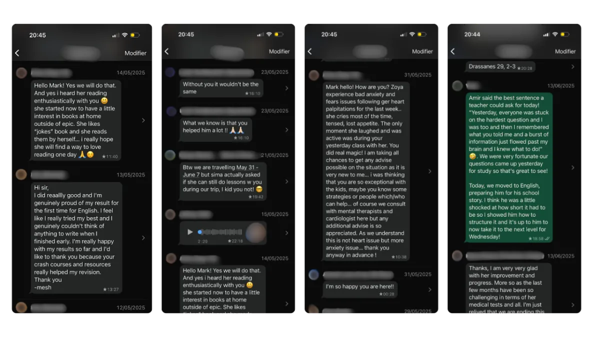 Mark's lessons are very focused and practical. My daughter enjoyed them so much and she finally understood how to structure her essays. Her confidence in English improved within the first few days.